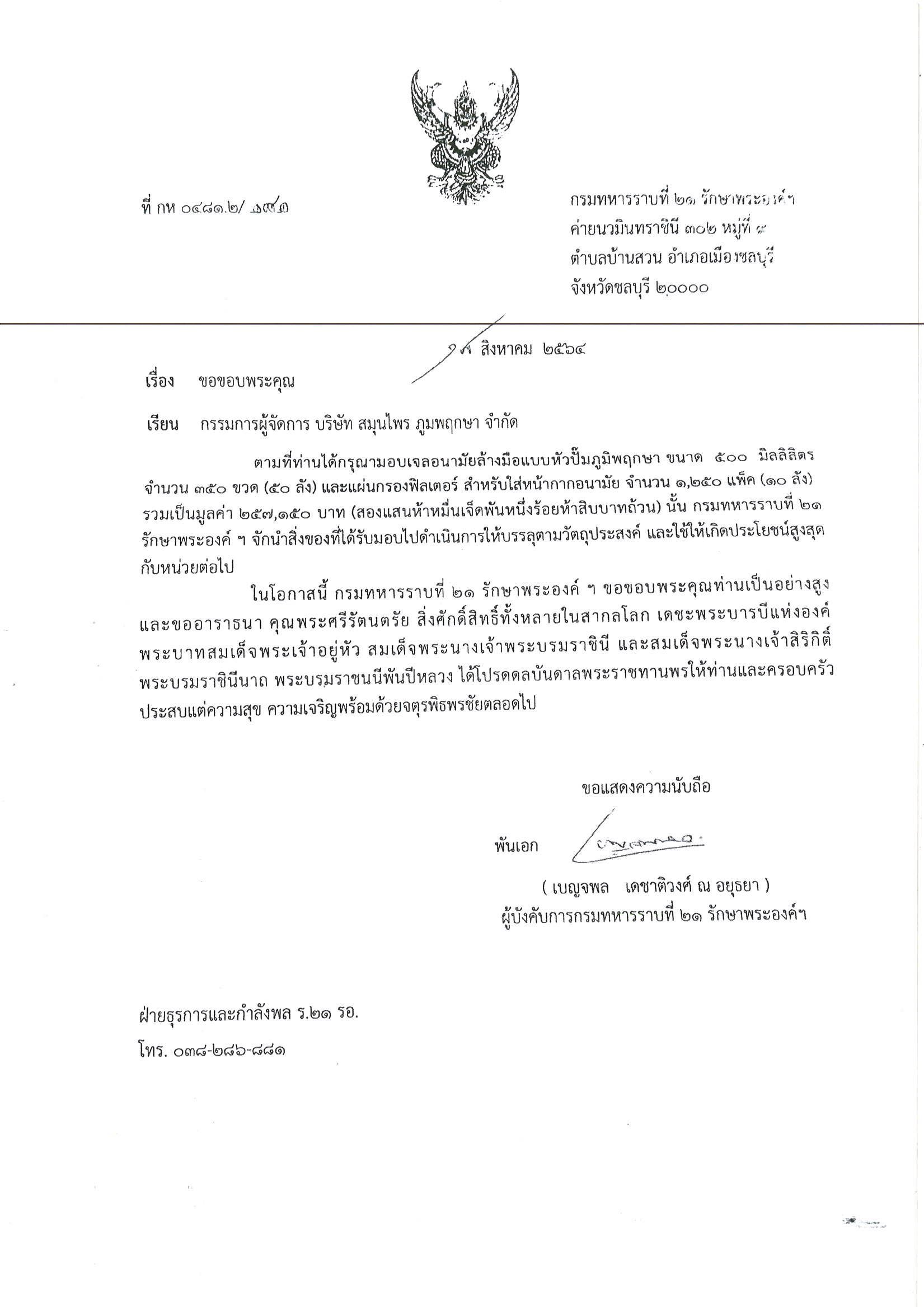 1. เจลอนามัยล้างมือแบบหัวปั๊มภูมิพฤกษา ขนาด 500 มล. จำนวน 350 ขวด (50 ลัง) ขวดละ 199 บาท เป็นจำนวนเงิน 69,650 บาท