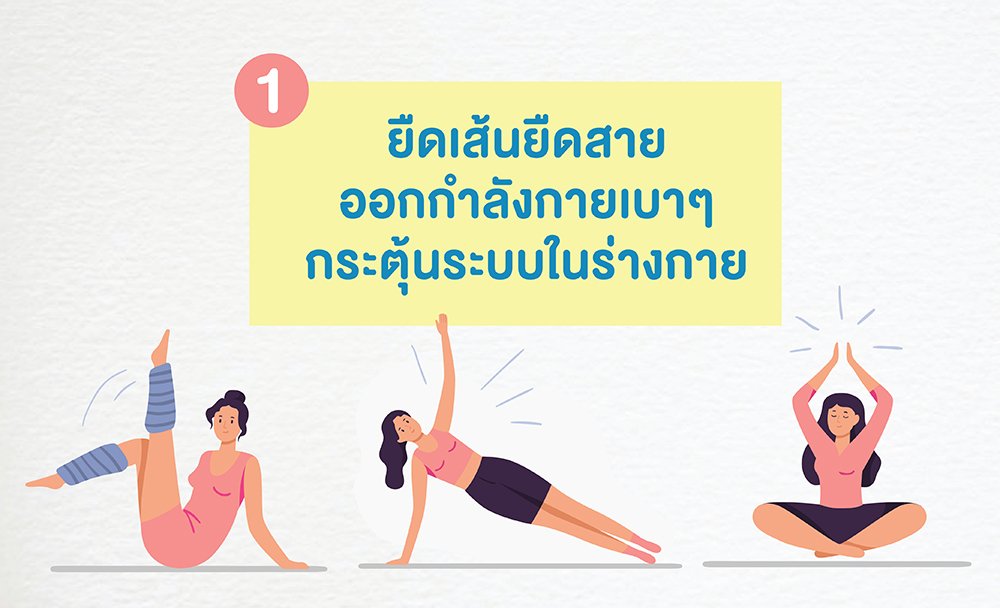 1.ยืดเส้นยืดสาย ออกกำลังกายเบาๆ เพื่อเป็นการกระตุ้นระบบการทำงานในร่างกาย