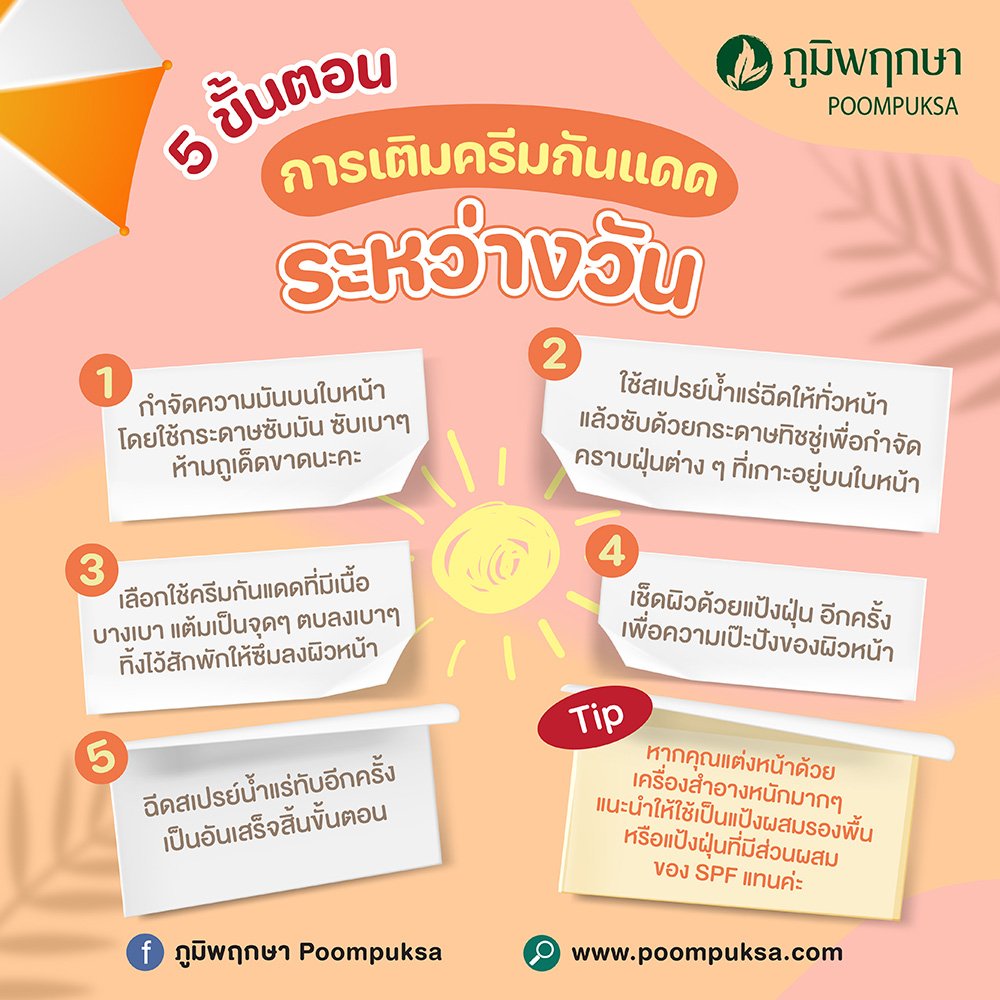5 ขั้นตอน การเติมครีมกันแดดระหว่างวัน