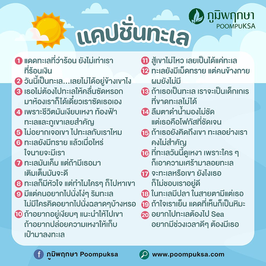 ซัมเมอร์นี้ใครมีแพลนเที่ยวทะเล ถ่ายรูปปังๆ อัพลงโซเชียล แล้วยังไม่มีแคปชั่นเด็ดๆ ภูมิพฤกษารวบรวมมาให้แล้ว ยอดไลค์พุ่งแน่นอน ไปดูกันเลย