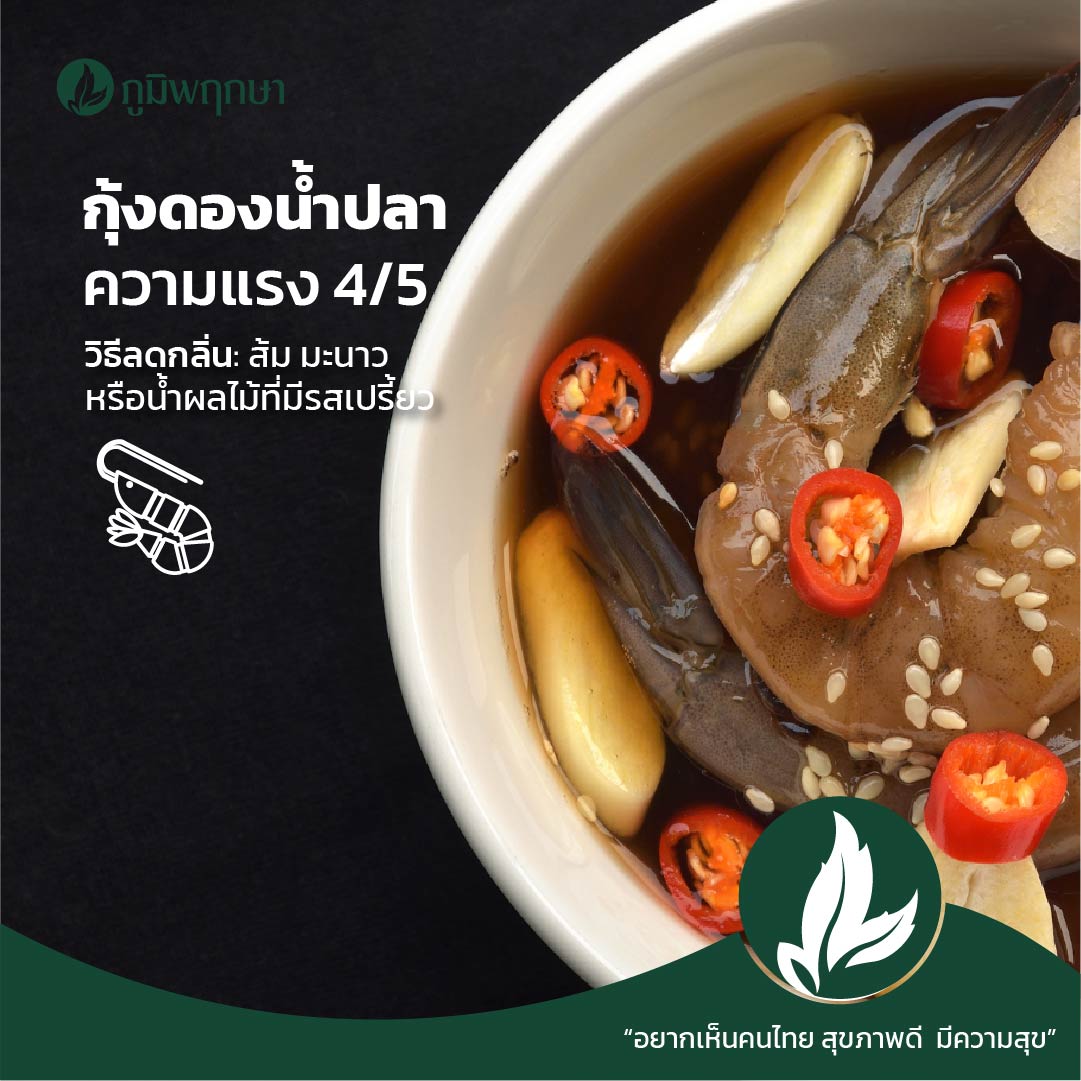 อาหารโปรดของใครหลายคน รวมถึงแอดมินด้วย ยิ่งดองยิ่งอร่อยฉ่ำ กุ้งดองน้ำปลาเป็นเมนุอาหารที่ผ่านกระบวนการหมักเช่นเดียวกับอาหารจำพวกกะปิ ปลาร้า ซึ่งวิธีการดับกลิ่นก็ทำแบบเดียวกันเลย คือการกินส้ม หรือน้ำผลไม้ตามเพื่อดับกลิ่น