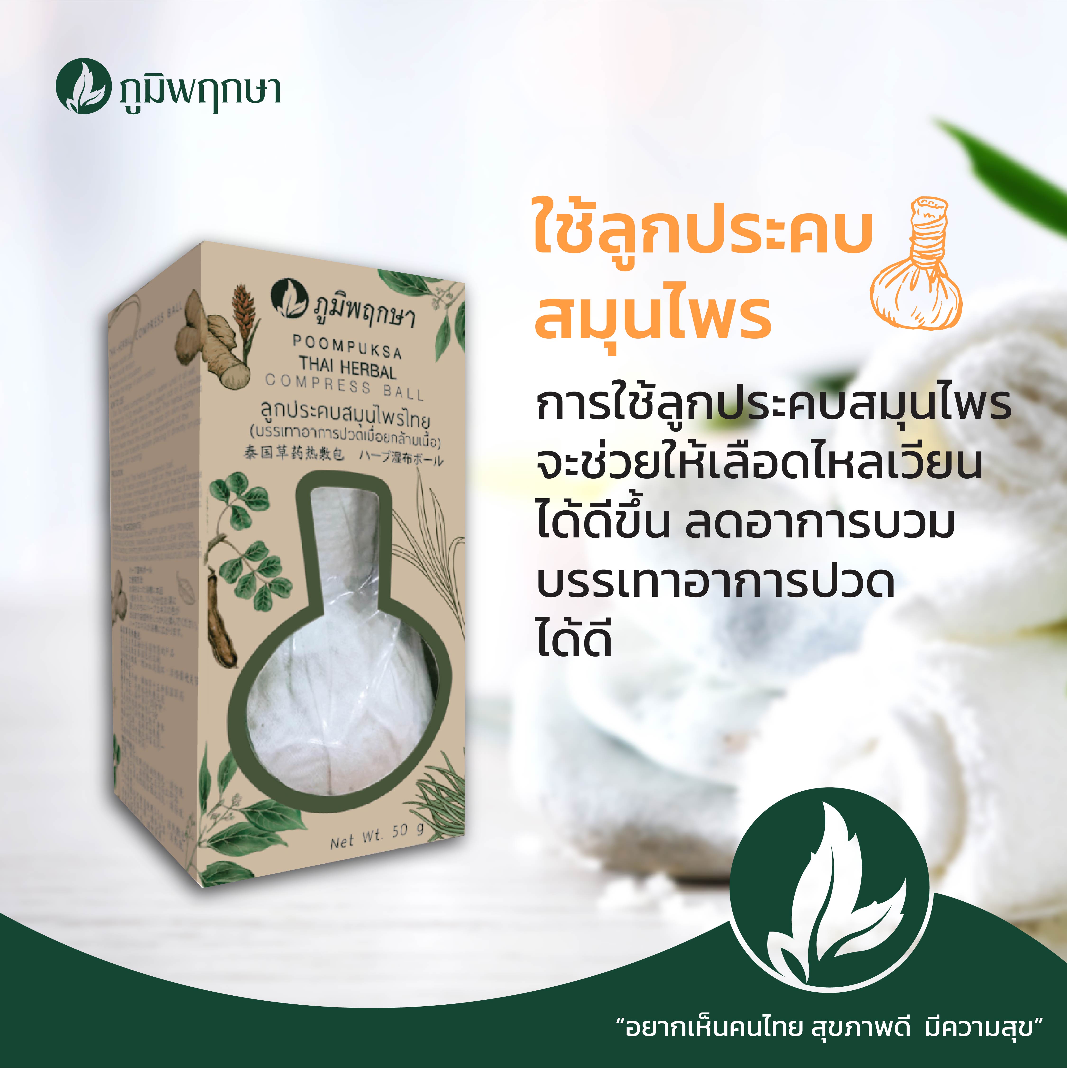 การนำลูกประคบสมุนไพรสดหรือสมุนไพรแห้ง นึ่งให้ร้อน การประคบสมุนไพรจะช่วยให้การนวดส่งผลรักษาได้ดีขึ้น ทั้งตัวยาจากสมุนไพร และความร้อน จะช่วยในการกระตุ้นการไหลเวียนของเลือด ช่วยลดอาการบวม บรรเทาการอักเสบของกล้ามเนื้อ บรรเทาอาการ ปวดเมื่อยตามร่างกาย ทั้งการผ่อนคลายจากกลิ่นหอม ๆ ของสมุนไพรทำให้อารมณ์ดีขึ้นทั้งยังหายปวด ลดความเสี่ยงออฟฟิศซินโดรมได้อีกทางหนึ่ง ต้องลองกันนะคะ