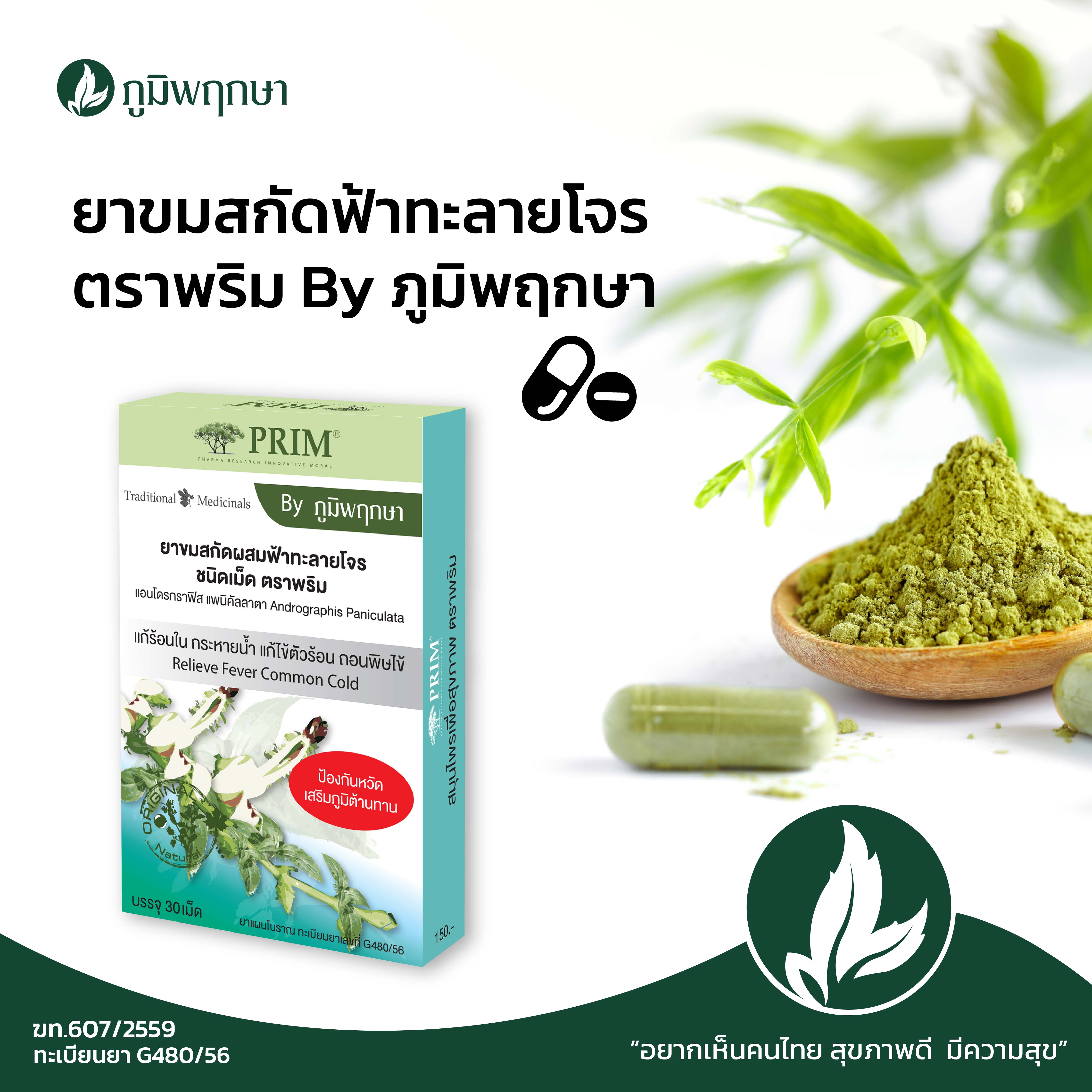 หากกะปริมาณในการบริโภคฟ้าทะลายโจรไม่ถูก ทางภูมิพฤกษามีผลิตภัณฑ์ ยาเม็ดฟ้าทะลายโจรที่กำหนดปริมาณการใช้ไว้ข้างฉลากแล้ว ยาขมเม็ดสกัด ฟ้าทะลายโจร ตราพริม By ภูมิพฤกษา