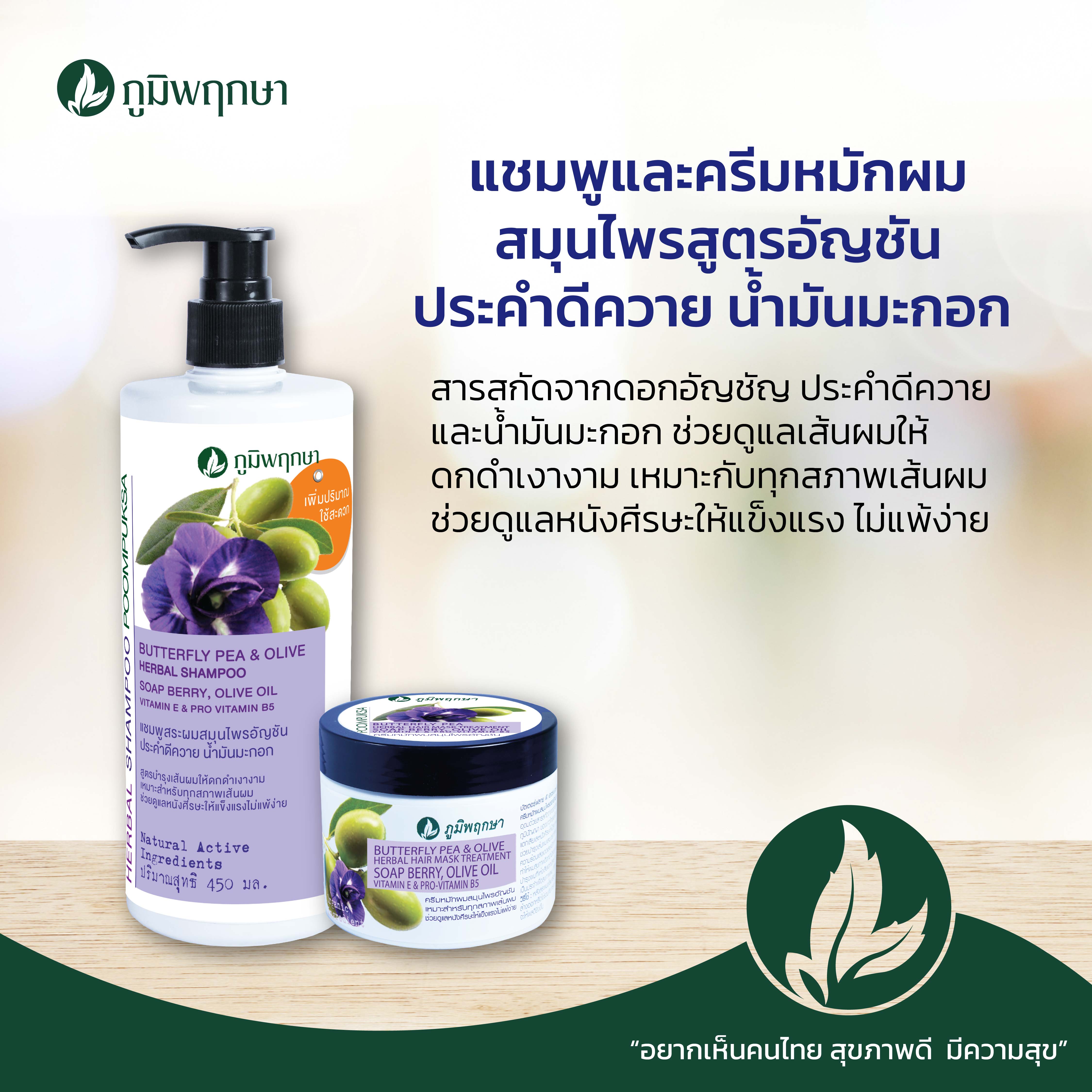 แชมพูและครีมหมักผมสระผม สูตรอัญชัน ประคำดีควาย น้ำมันมะกอก