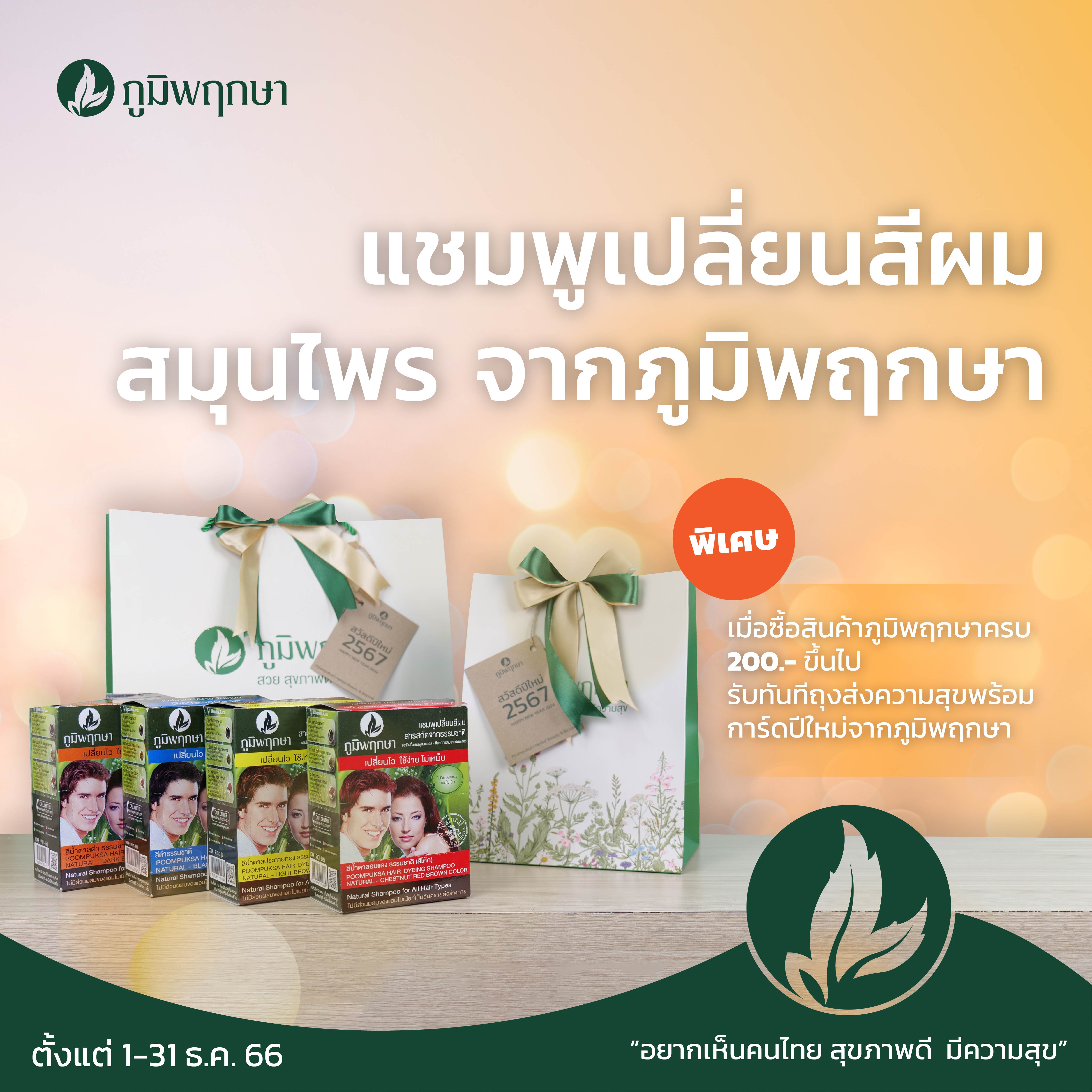 ซื้อ แชมพูสมุนไพรเปลี่ยนสีผมภูมิพฤกษา วันนี้รับถุงปีใหม่พร้อมการ์ดปีใหม่ เตรียมพร้อมเป็นของขวัญส่งให้กับญาติผู้ใหญ่ที่เรารักได้เลย
