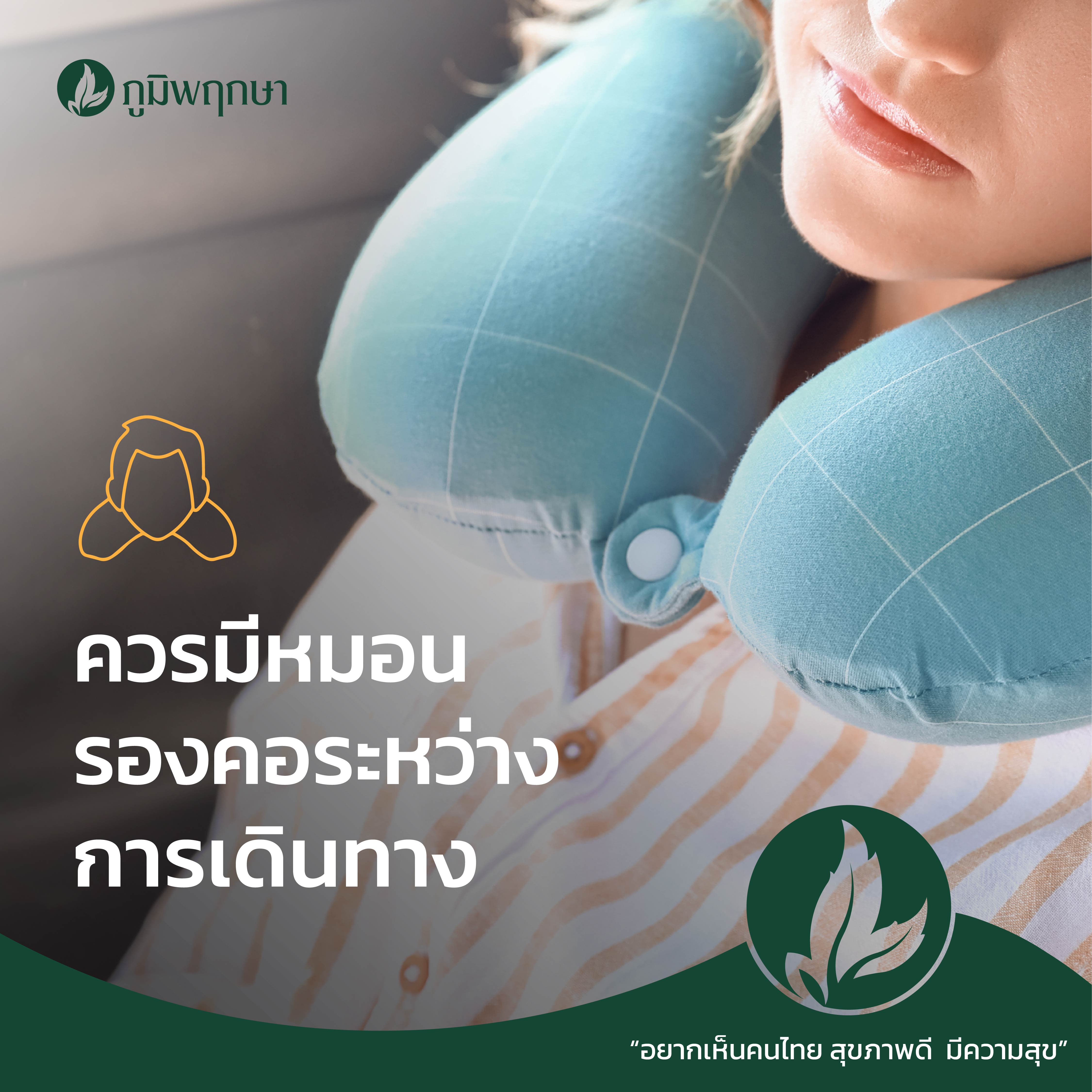 ควรมีหมอนรองคอระหว่างการเดินทาง - เพื่อไม่ให้เกิดอาการคอเกร็ง และล็อกคอไม่ให้เคลื่อนไหวขณะหลับ