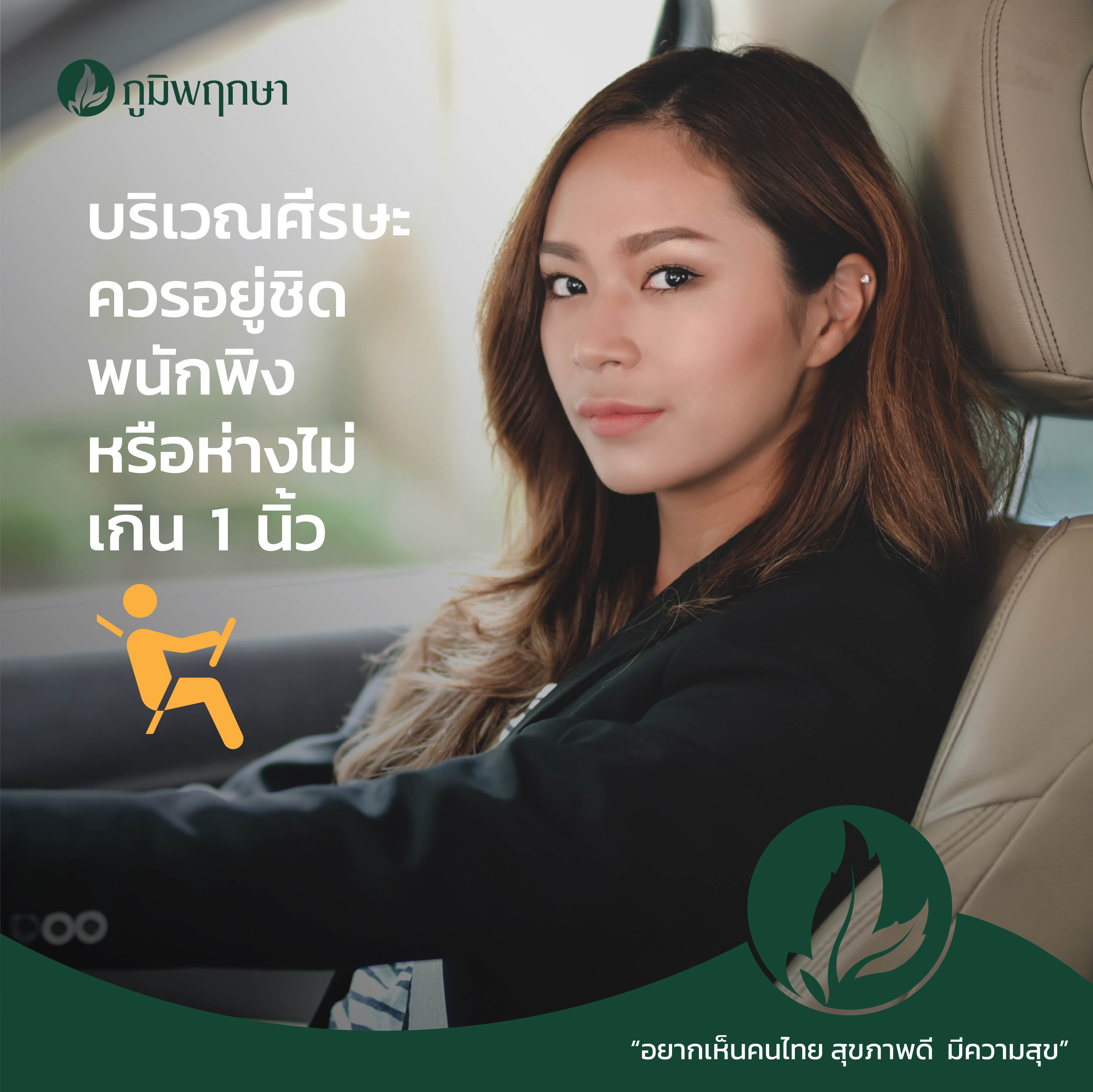 บริเวณศีรษะควรอยู่ชิดพนักพิง หรือไม่เกิน 1 นิ้ว - ลดอาการบาดเจ็บของคอเมื่อเกิดอุบัติเหตุได้