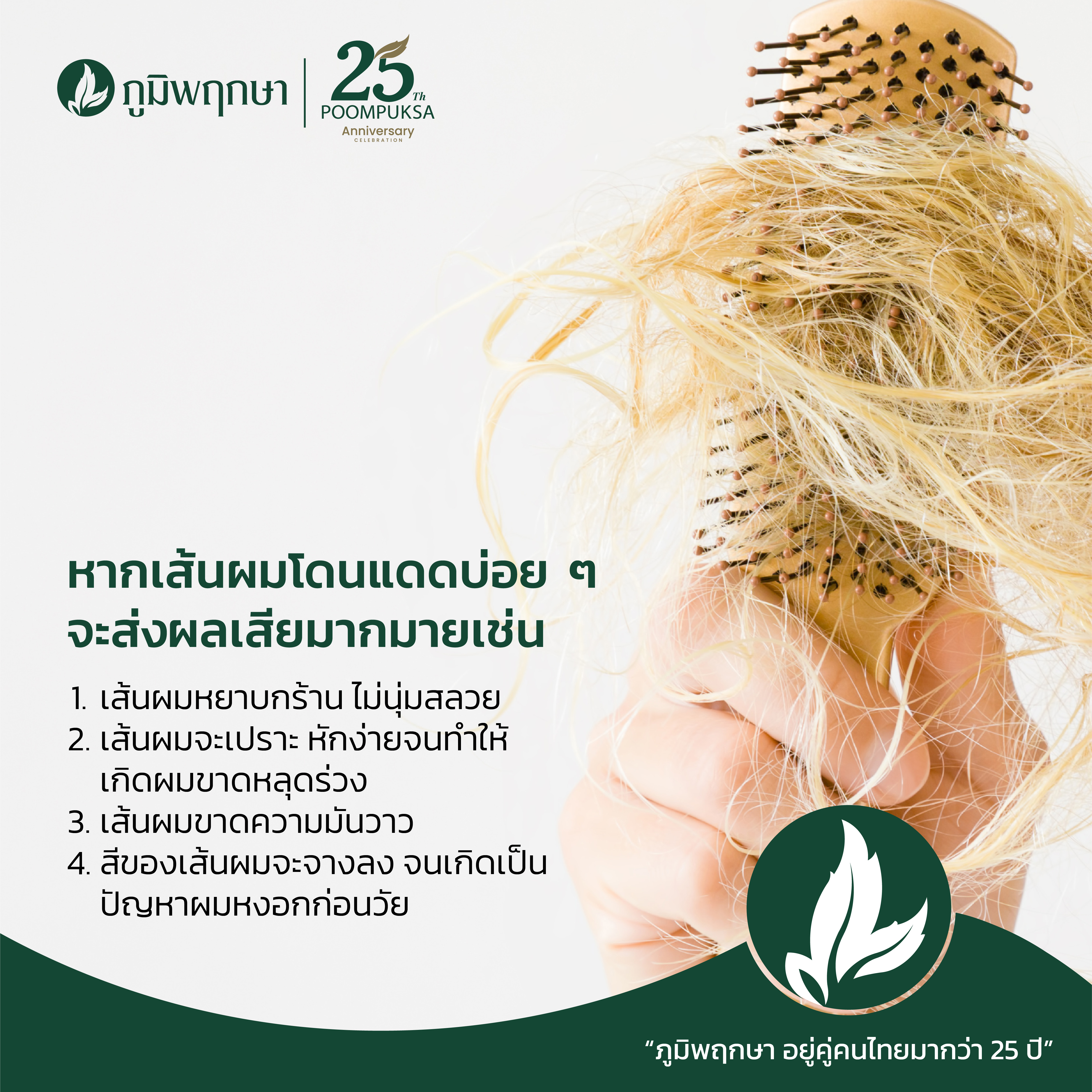 จากผลงานวิจัยพบว่า แสงแดด รังสีอัลตราไวโอเลตโดยเฉพาะแสง UVB ส่งผลต่อโปรตีนในเส้นผมมากว่า UVA 2-5 เท่า ส่งผลให้เกิดผลดังนี้