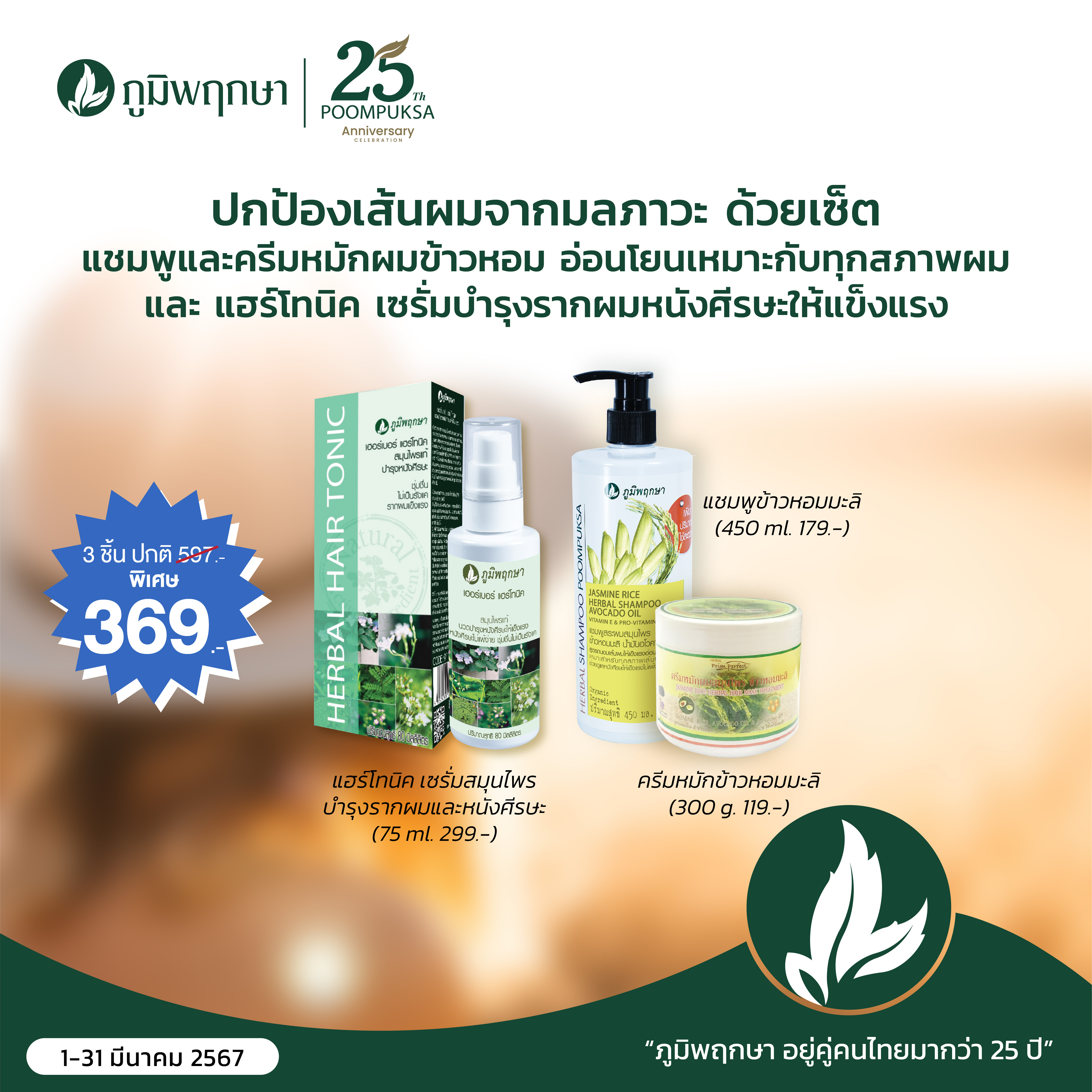 แฮร์โทนิค เซรั่มบำรุงรากผมและหนังศีรษะ+แชมพูข้าวหอมมะลิ+ครีมหมักข้าวหอมมะลิ 3 ชิ้น ราคาพิเศษ 369.- (จากปกติ 597.-)