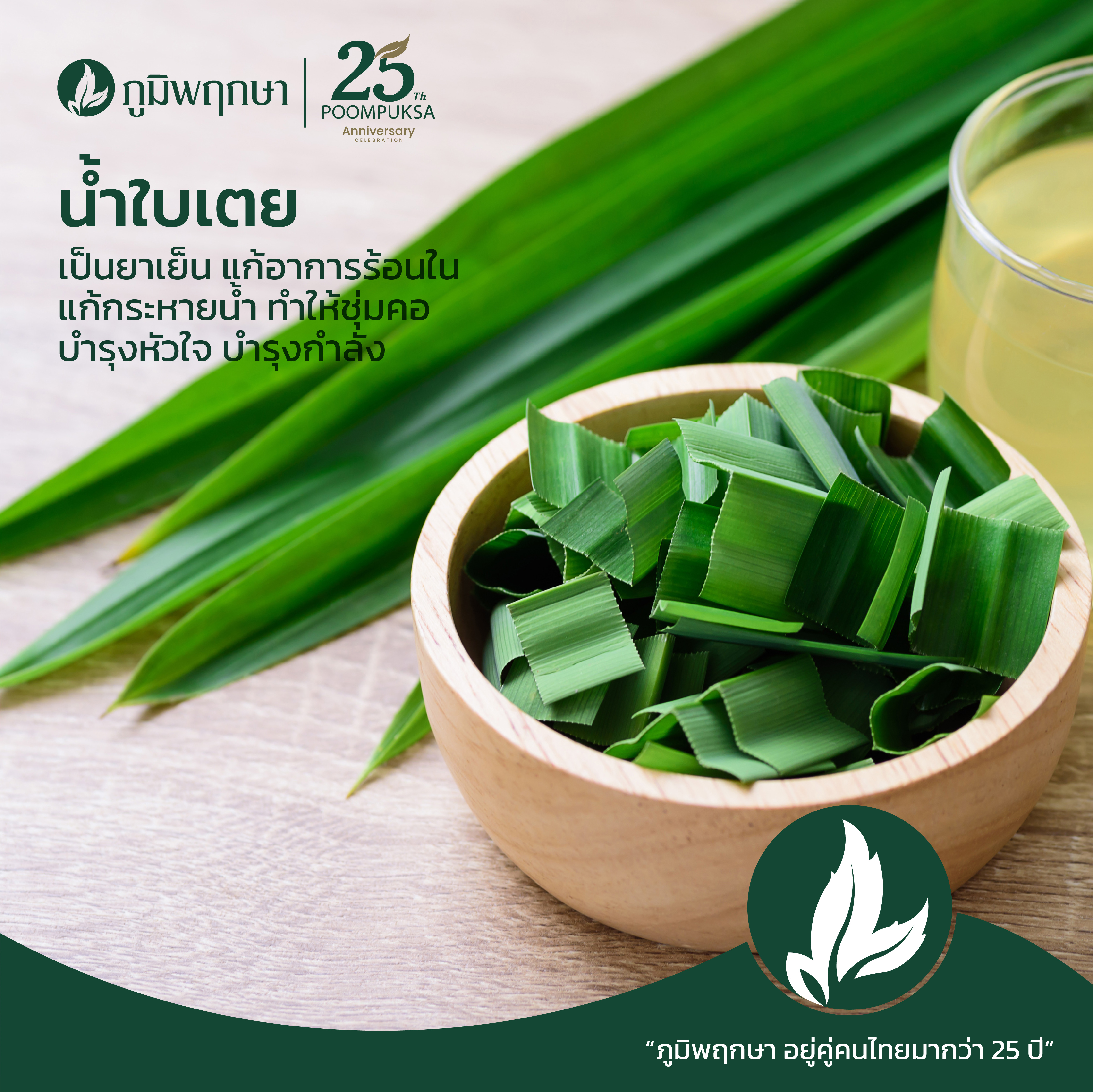 ใบเตย มีสรรพคุณเป็นยาเย็น แก้อาการร้อนใน แก้กระหายน้ำ ทำให้ชุ่มคอ บำรุงหัวใจ บำรุงกำลัง ลดระดับน้ำตาลในเลือดได้เป็นอย่างดีอีกด้วย การใช้ใบเตย สามารถเอาใบสดมาต้ม หรือหากต้องการเก็บเอาไว้ดื่มได้นาน ให้เอาใบสดมาตากแห้งและเอามาคั่ว ทำเป็นชาเอาไว้ดื่ม น้ำเตยหอมมีกลิ่นหอมเย็น ช่วยดับพิษร้อน ทำให้รู้สึกสดชื่น เย็นสบาย แก้อาการอ่อนเพลีย ปรับสมดุลในร่างกาย ช่วยลดความดันโลหิต ควบคุมระดับน้ำตาลในเลือด