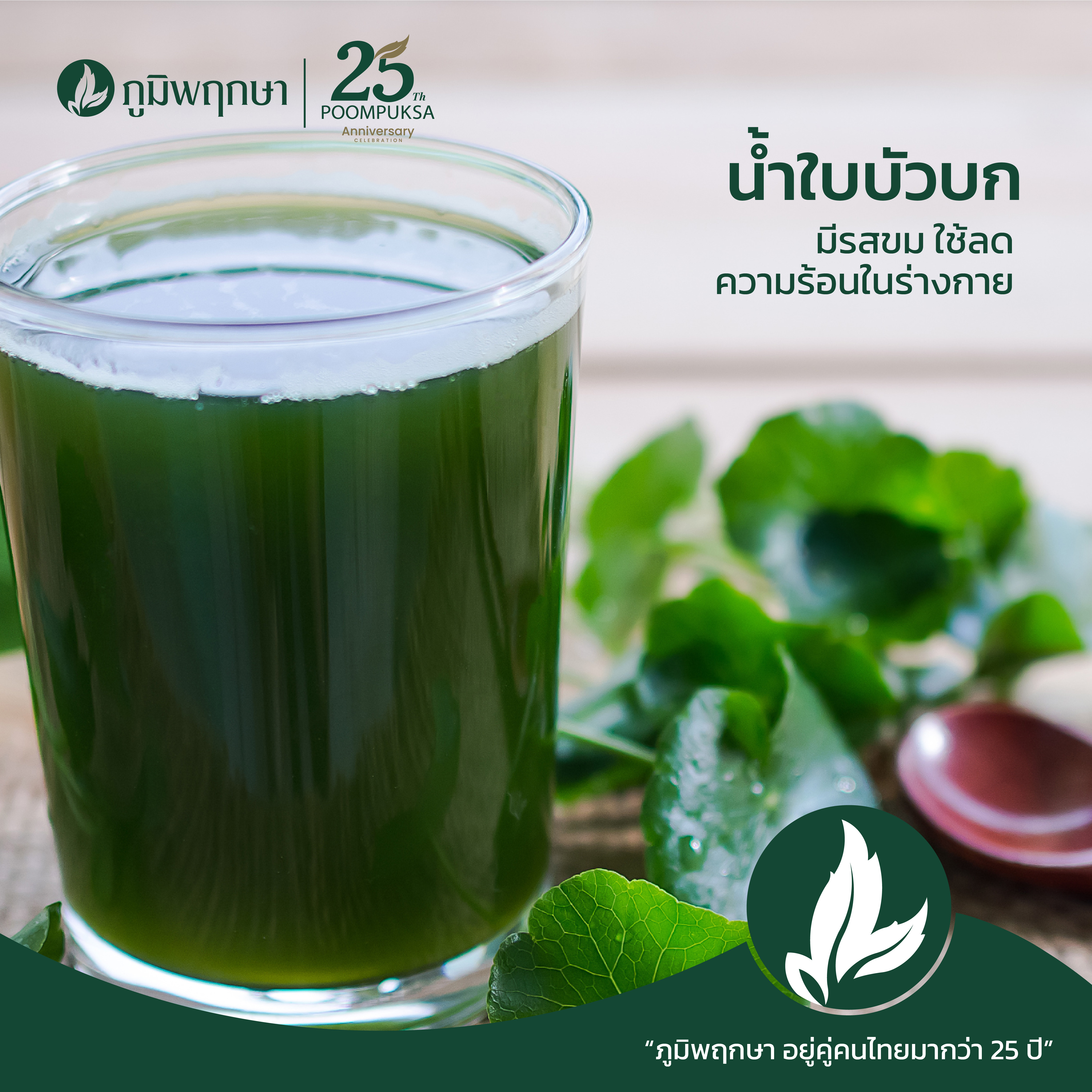 ข้อมูลจากคณะเภสัชศาสตร์ มหาวิทยาลัยเชียงใหม่ ระบุว่าใบบัวบกเป็นพืชที่เหมาะสำหรับเตรียมเป็นเครื่องดื่มและอาหาร ช่วงอากาศร้อน ช่วง 12.00-14.00 น. อันเป็นช่วงเวลาที่ธาตุไฟในจักรวาลแรงกล้า เหมาะสำหรับวัยรุ่นมากที่สุด เพราะเป็นอายุที่มีธาตุไฟประจำกาย เนื่องจากใบบัวบกมีรสขม ใช้ลดความร้อนในร่างกาย ใบบัวบกเป็นยาบำรุง รักษาโรคผิวหนัง โรคประสาท ขับปัสสาวะ ต้นและใบเป็นยาบำรุงหัวใจ แก้อ่อนเพลียเมื่อยล้า แก้ท้องเสีย อาการเริ่มเป็นบิด