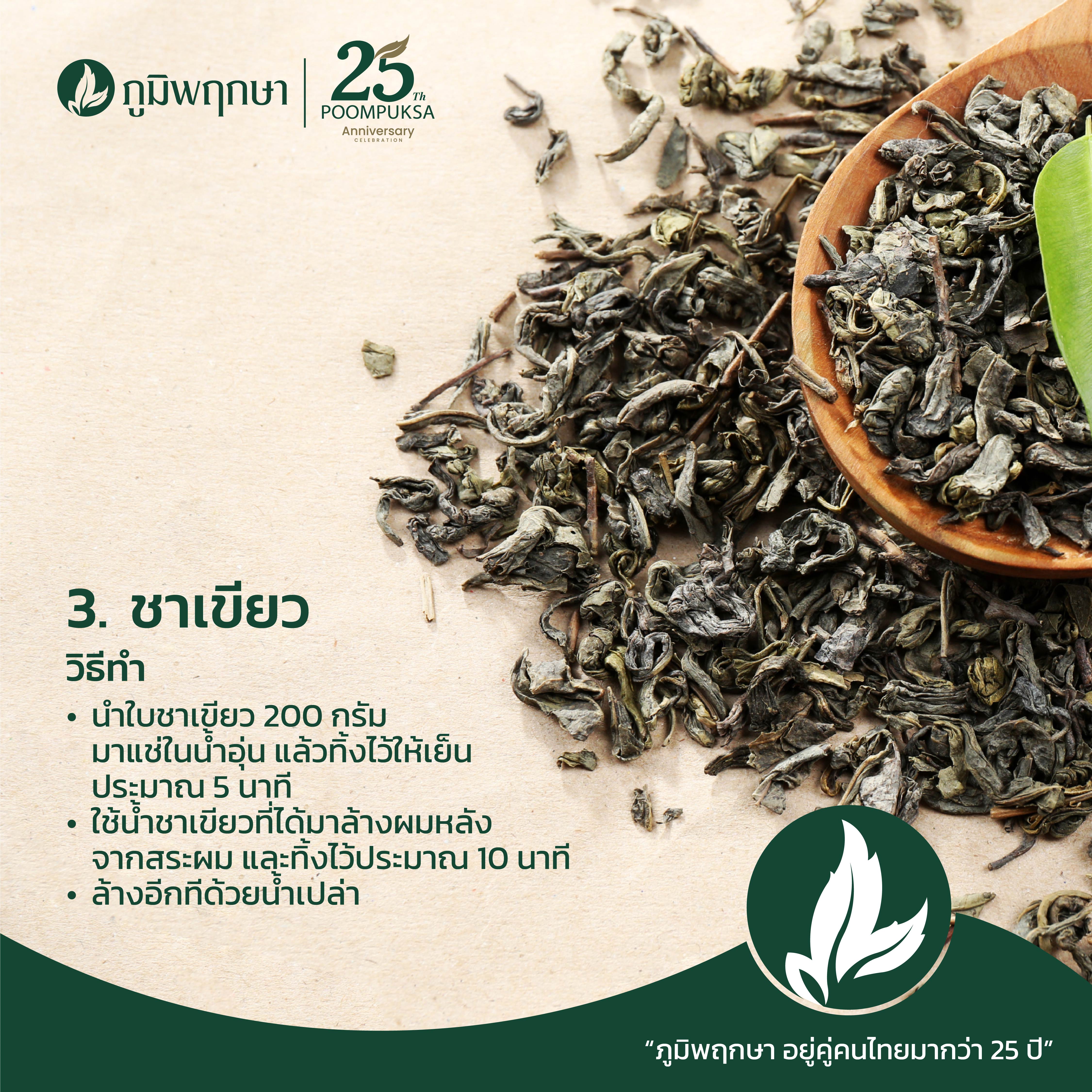 • ใช้น้ำชาเขียวที่ได้มาล้างผมหลังจากสระผม และทิ้งไว้ประมาณ 10 นาที