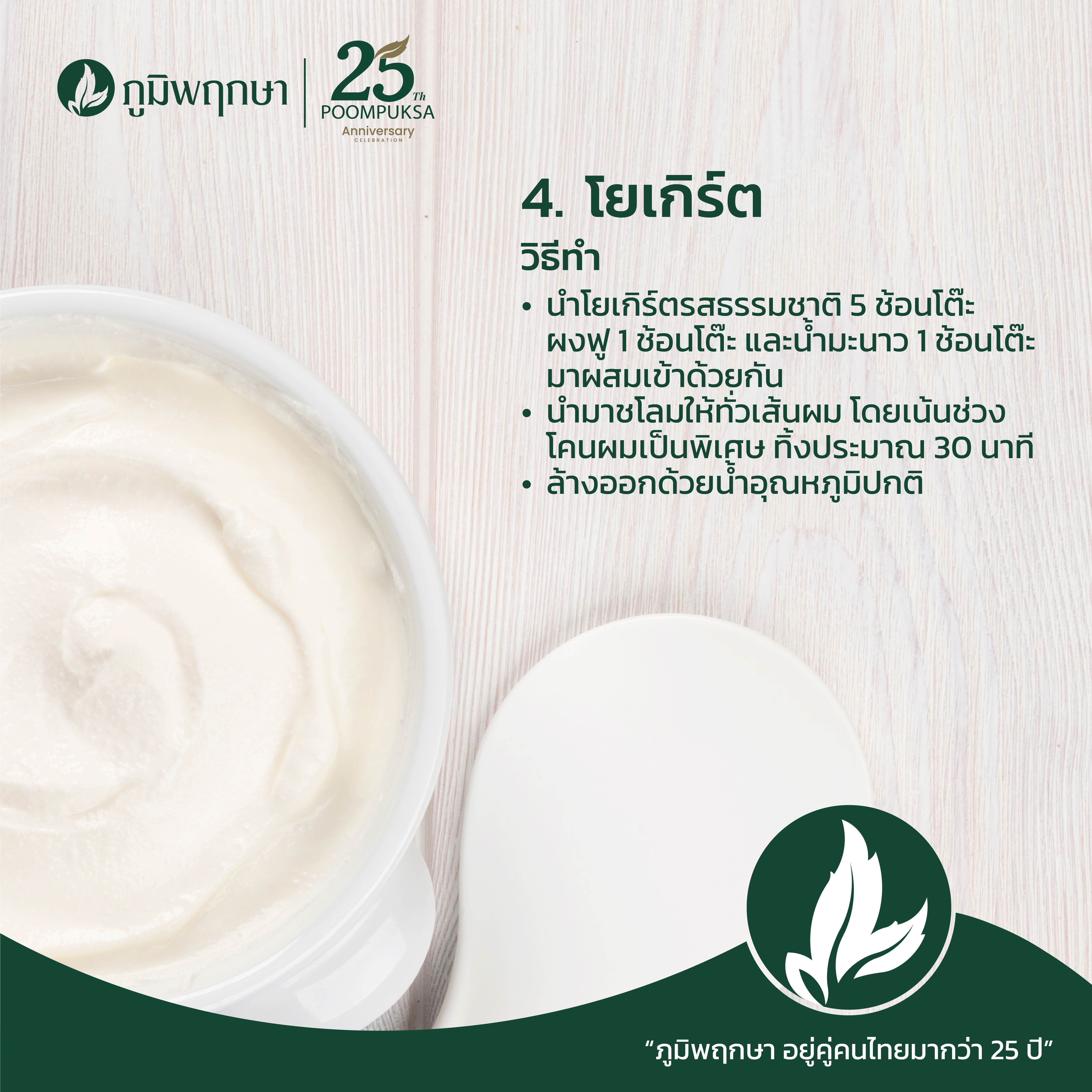 โยเกิร์ต นอกจากจะนำมารับประทานเพื่อดีท็อกซ์ลำไส้ได้แล้ว ยังสามารถนำมาใช้เป็นสูตรดีท็อกซ์เส้นผมได้อีกด้วย ซึ่งจะช่วยขจัดความมันบนเส้นผมและหนังศีรษะได้อย่างอยู่หมัด และช่วยทำให้เส้นผมนุ่มลื่นมากขึ้น