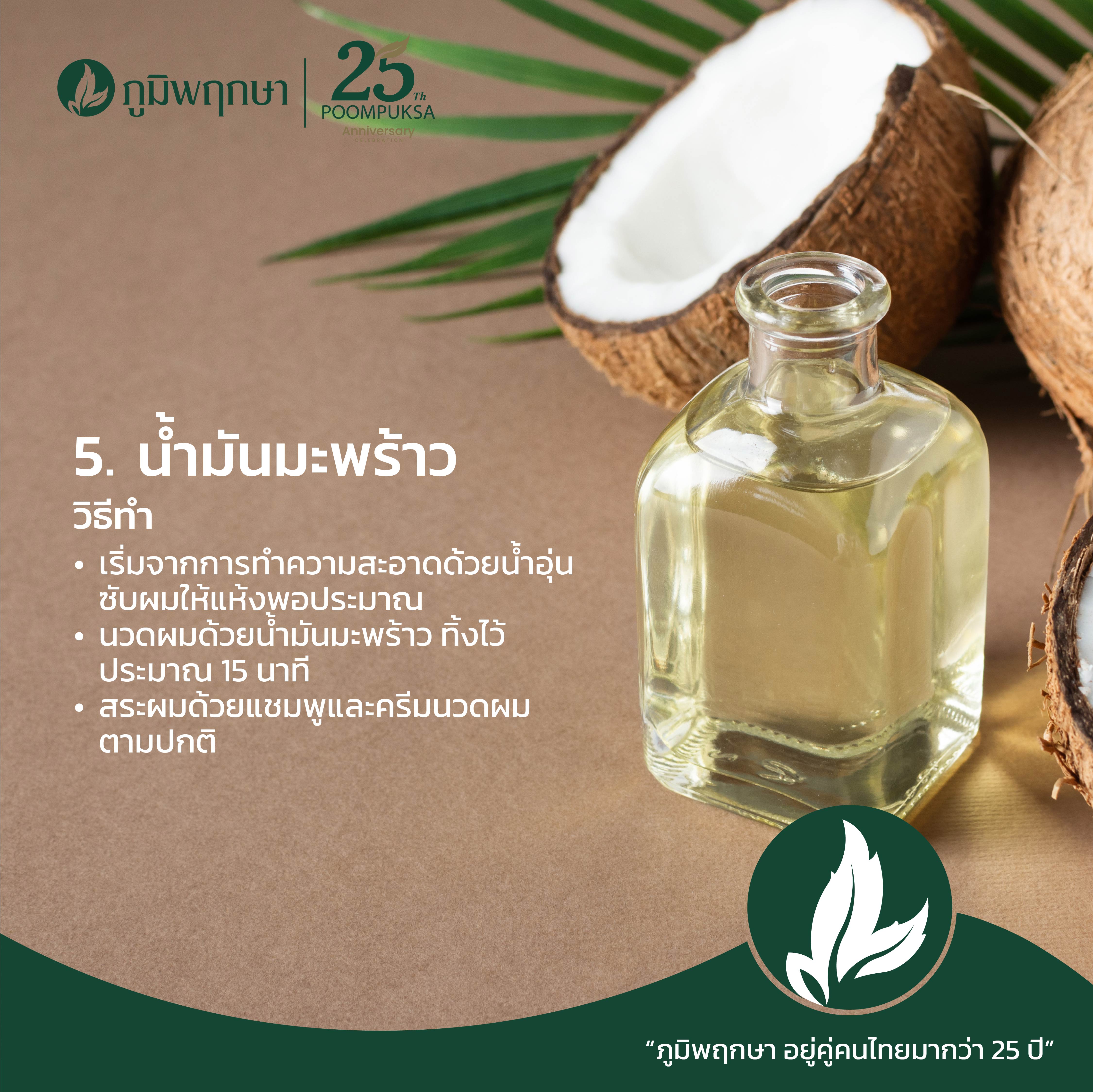 • นวดผมด้วยน้ำมันมะพร้าว ทิ้งไว้ประมาณ 15 นาที
