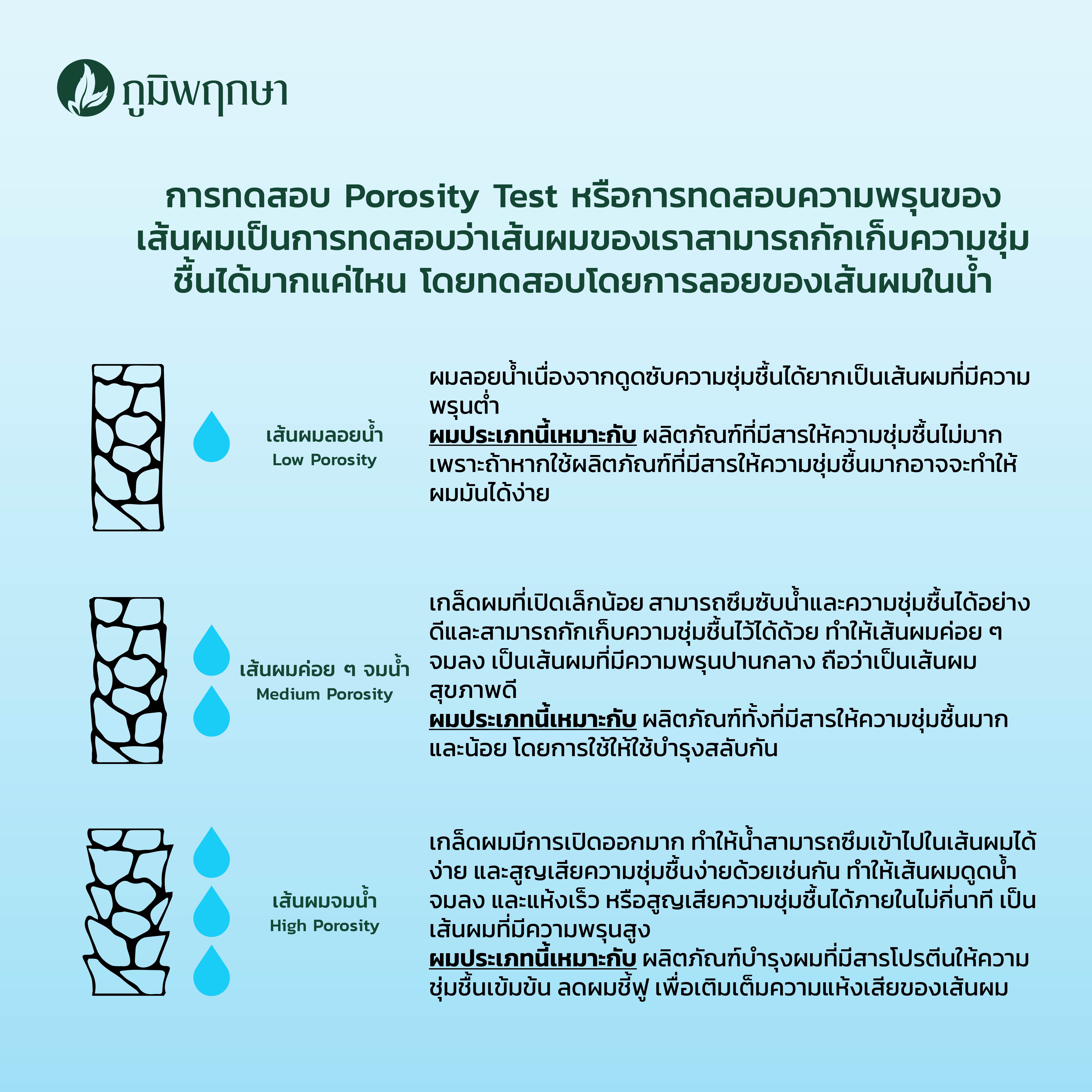 การทดสอบนี้ มีชื่อเรียกว่า Porosity Test หรือการทดสอบความพรุนของเส้นผม โดยดูจากความสามารถในการซึมซับความชุ่มชื้นและความสามารถในการกักเก็บความชุ่มชื้นของผมไว้