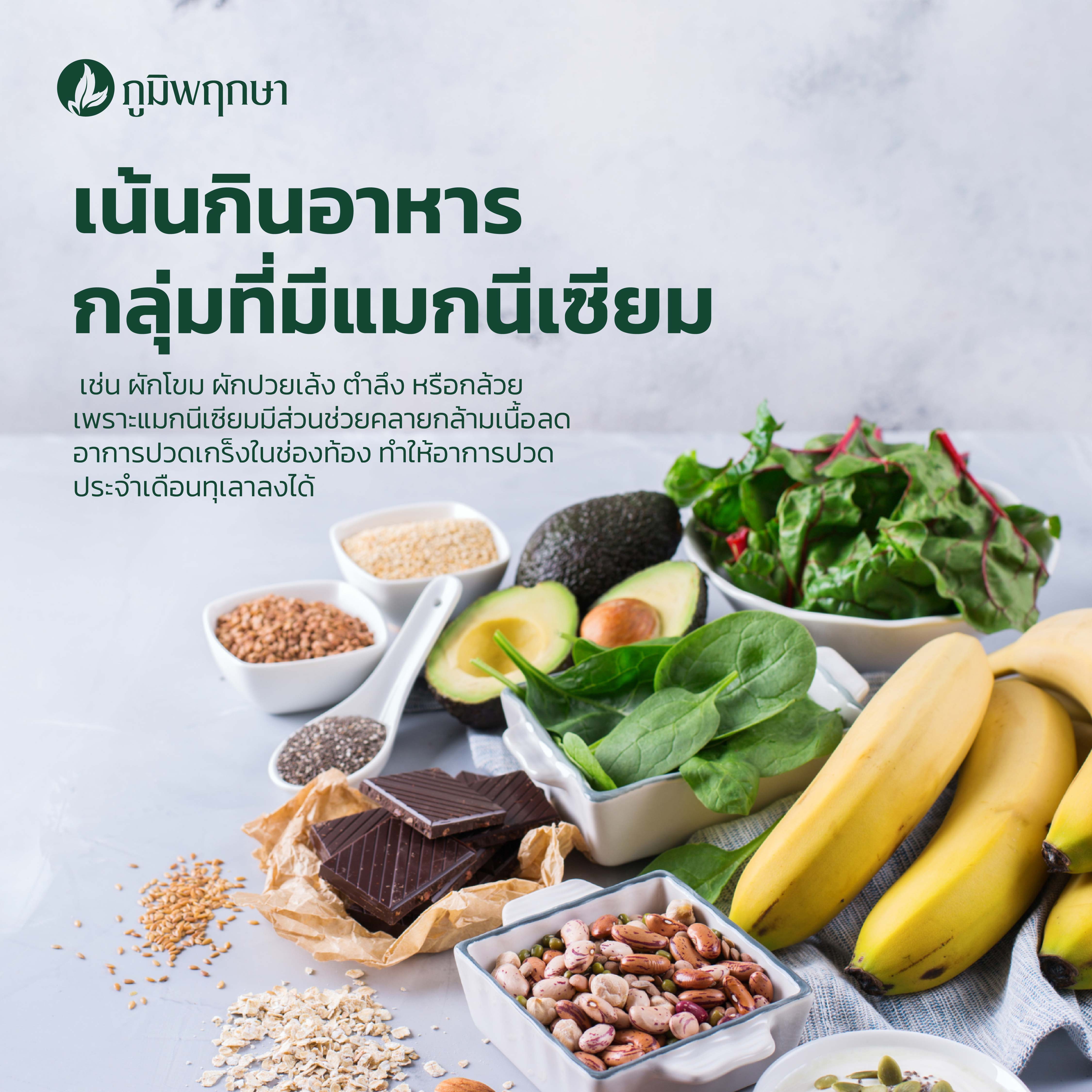 รู้หรือไม่ว่า แค่เลือกกินให้ถูกก็ช่วยลดอาการปวดประจำเดือนได้โดยไม่ต้องพึ่งยาเลยทีเดียว ซึ่งอาหารที่เหมาะสำหรับช่วงมีประจำเดือน คือกลุ่มที่มีแมกนีเซียม เช่น ผักโขม ผักปวยเล้ง ตำลึง หรือกล้วย เพราะแมกนีเซียมมีส่วนช่วยคลายกล้ามเนื้อ ลดอาการปวดเกร็งในช่องท้อง ทำให้อาการปวดประจำเดือนทุเลาลงได้