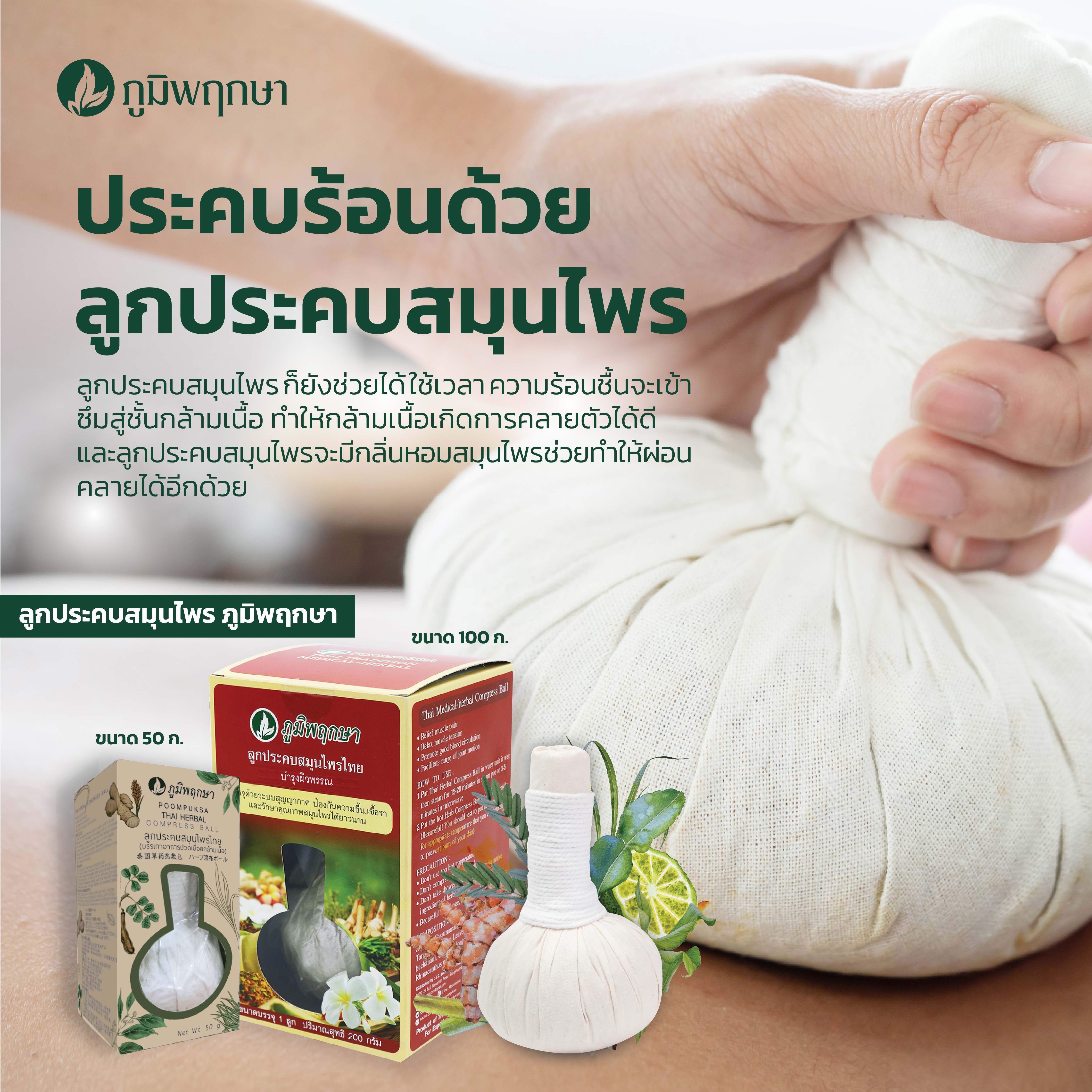ข้อควรระวัง : ห้ามใช้ลูกประคบที่ร้อนเกินไป ห้ามประคบแผล หลังจากประคบแล้วไม่ควรอาบน้ำทันทีเพราะจะเป็นการชำระล้างตัวยาออกไป