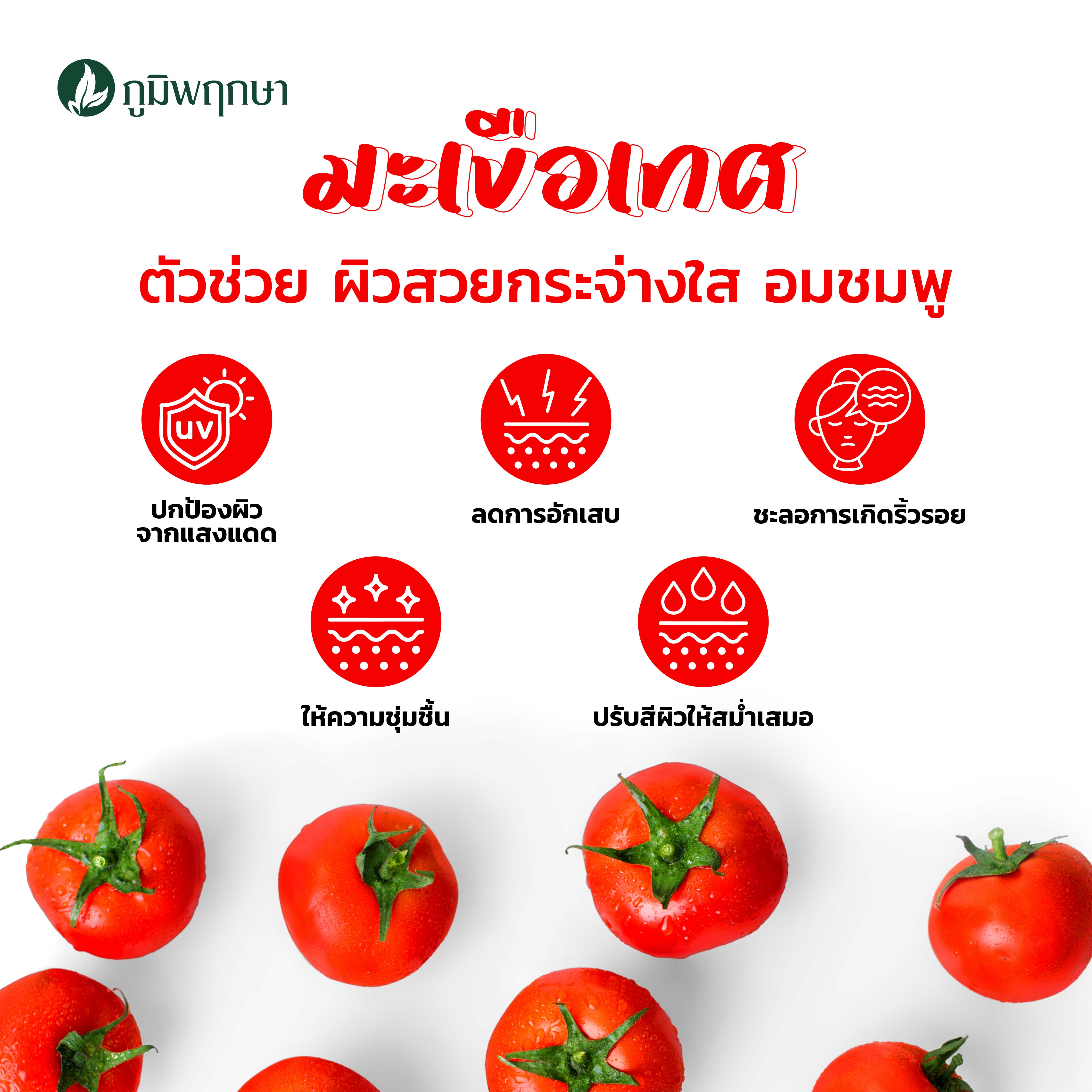 ปกป้องผิวจากแสงแดด: ไลโคปีนในมะเขือเทศช่วยลดความเสียหายที่เกิดจากรังสี UV ซึ่งเป็นสาเหตุหลักของการเกิดฝ้า กระ จุดด่างดำ และมะเร็งผิวหนัง